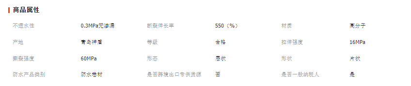 ★拉伸強度大:拉伸強度≥25Mpa,有效阻止地基變化而造成防水層損壞。