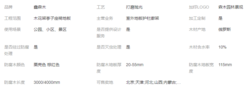 防腐木地板,是將木材經(jīng)過特殊防腐處理后,得到的具有防腐爛、防白蟻、防真菌的功效的地板。專門用于戶外環(huán)境的露天木地板,并且可以直接用于與水體、土壤接觸的環(huán)境中,是戶外木地板、園林景觀地板、戶外木平臺、露臺地板、戶外木棧道及其他室外防腐木涼棚的首選材料。