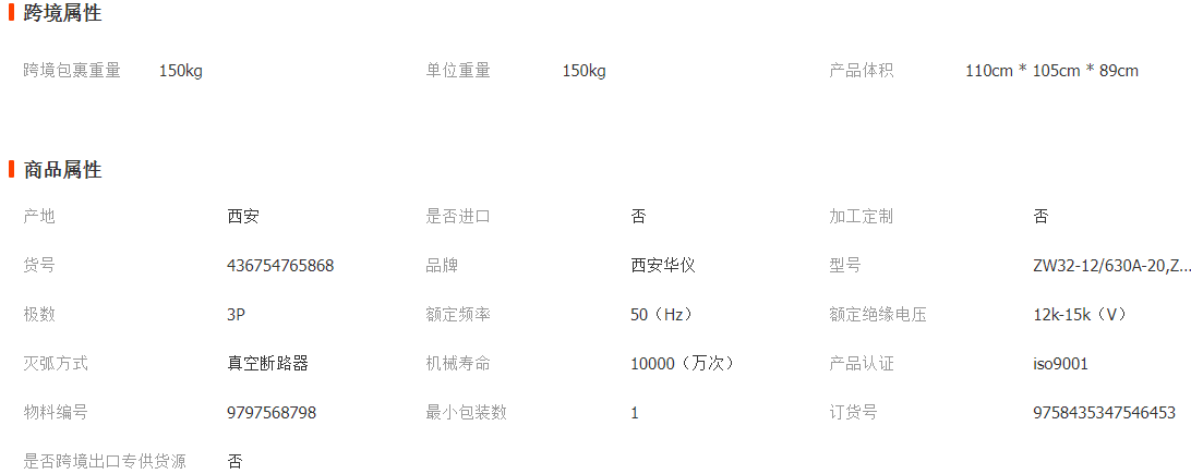 華儀廠家直銷戶外高壓真空斷路器ZW32智能隔離柱上分界開關(guān)看門狗