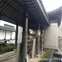 1、采用鋁合金斗拱后置倒掛安裝技術。解決了傳統(tǒng)鋁合金斗拱安裝工藝 復雜、工期長的缺點,使鋁合金斗拱由受力構件變?yōu)檠b飾構件。