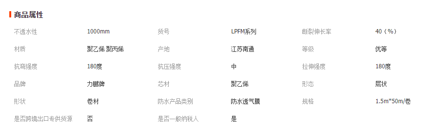 力鵬?紡粘聚乙烯和聚丙烯膜?由中間層聚烯烴微孔膜以及兩層高分子材料經(jīng)先進(jìn)的熱復(fù)合工藝生產(chǎn)而成,該膜鋪在保溫層的上方,作為屋面體系的輔助防水保障,在加強(qiáng)建筑水密性的同時(shí),以其獨(dú)特的透氣功能,使圍護(hù)內(nèi)的潮氣順利排出,從而有效保持建筑物的使用壽命,起到保溫,節(jié)能,改善人居環(huán)境的作用。