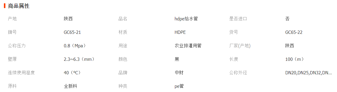 陜西中財 PE給水管(