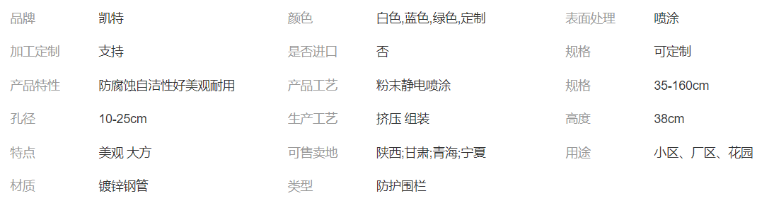 產(chǎn)品介紹:廠區(qū)圍墻圍欄是采用鋅合金材料制作的用于不同部位、具備不同功能性的圍護(hù)欄桿,由于其后期是用靜電噴涂處理表面層,使具有高強(qiáng)度、高硬度、外觀精美、色澤鮮艷等優(yōu)點,成為住宅小區(qū)、工廠院校、道路交通等使用的主流產(chǎn)品。傳統(tǒng)的護(hù)欄使用鐵條材料,需要借助電焊等工藝技術(shù),而且質(zhì)地較軟、容易生銹、色彩單一。鋅鋼陽臺護(hù)欄完美地解決了傳統(tǒng)護(hù)欄的缺點,而且價格適中,成為傳統(tǒng)各式護(hù)欄材料的替代產(chǎn)品。鋅鋼護(hù)欄采用無焊穿插組合方式進(jìn)行拼裝(也有工藝需要局部焊接,但要在噴涂前做補(bǔ)鋅處理),基材厚度是不銹鋼的2-3倍,500多種顏色可供選擇,表面采用聚酯抗氧化粉末靜電噴涂,增強(qiáng)了護(hù)欄的抗氧化抗紫外線、耐候耐腐能力。以鋅鋼為基材,用在建筑護(hù)欄中的產(chǎn)品具體的主要有:陽臺護(hù)欄、防護(hù)窗、樓梯扶手、柵欄、花園圍欄、百葉窗、空調(diào)圍欄、道路護(hù)欄。工業(yè)用圍欄(如廠區(qū)圍欄、商業(yè)場地圍欄)、農(nóng)業(yè)用圍欄(如田地圍欄,畜牧圍欄)、民用圍欄(如建筑物頂圍欄,圍欄墻等)、公共設(shè)施圍欄(如道路隔離欄)等等。 使用比較廣泛。產(chǎn)品實拍展示: